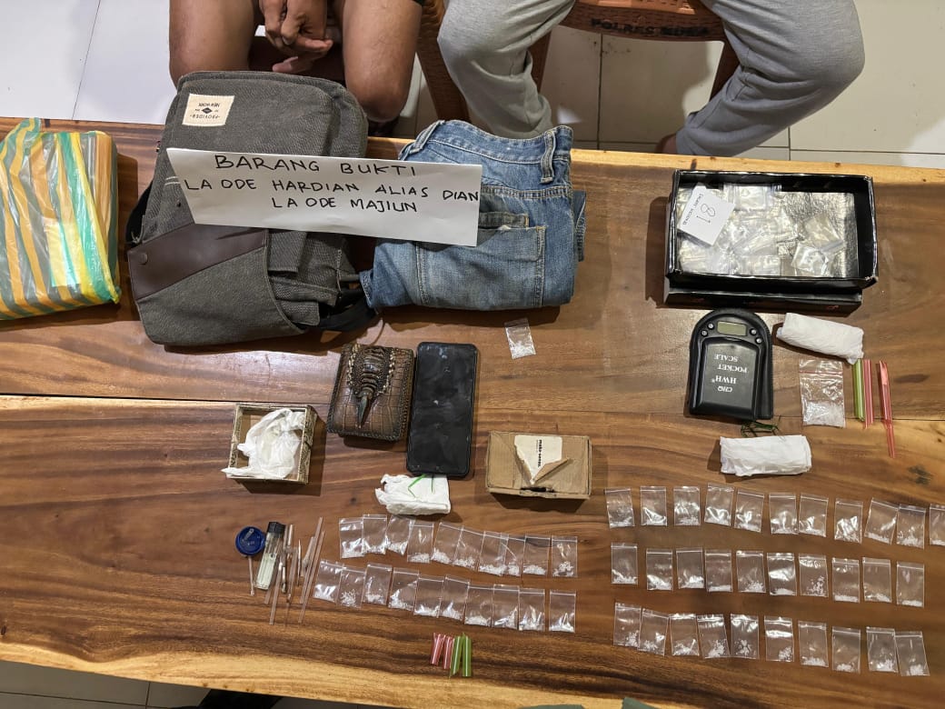 Ia ditangkap aparat Satresnarkoba Polres Muna, Senin (14/7/2025), setelah lama dibayangi kecurigaan masyarakat. Dari tangan La Ode, polisi menyita 19,55 gram sabu siap edar yang tersimpan dalam puluhan sachet kecil dan satu sachet sedang. Barang bukti ditemukan di rumah pelaku di Kelurahan Watonea, Kecamatan Katobu, usai penggerebekan berdasarkan hasil interogasi awal.