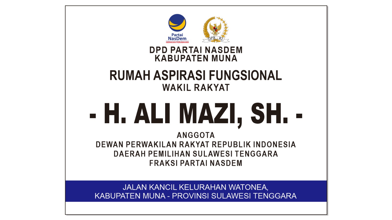 Ketua DPD Partai NasDem Muna, dr. Eddy Rosman, mengatakan “Rumah Aspirasi Fungsional” yang berlokasi di Jalan Kancil, Kelurahan Watonea, Kecamatan Katobu, dipelopori oleh Ketua DPW Partai NasDem Sultra (Ali Mazi) sebagai wadah masyarakat untuk menyampaikan polemik dan unek-unek, baik polemik di bidang pendidikan, infrastruktur dan pembangunan, maupun masalah sosial-ekonomi lainnya.